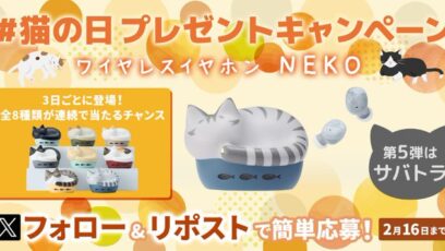 SNS応募の懸賞【X懸賞】猫のワイヤレスイヤホン radius NEKO true wireless earphoneを1名様にプレゼント 締切:2026-02-16 フジヤエービック‐#猫の日 #プレゼントキャンペーン 賞品:radius NEKO true wireless earphone(1名様) 締切:2026年2月16日(月)...SNS応募の懸賞