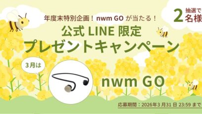 SNS応募の懸賞【LINE懸賞】オープンイヤー型ネックバンドワイヤレスイヤホン nwm GOを2名様にプレゼント 締切:2026-03-31 毎月nwm製品が当たる!公式LINE限定プレゼントキャンペーン 賞品:nwm GO(2名様) 締切:2026年3月31日(火) 参加条件 期間中にnwm公式LINE...SNS応募の懸賞