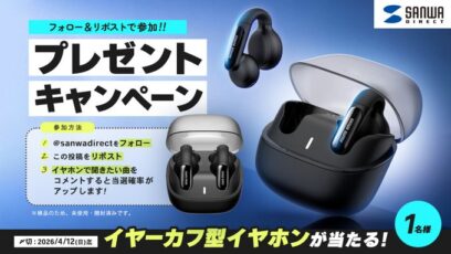 SNS応募の懸賞【X懸賞】イヤーカフ型イヤホンを1名様にプレゼント 締切:2026-04-12 サンワダイレクト‐フォロー&リポストキャンペーン 賞品:イヤーカフ型イヤホン(1名様) 締切:2026年4月12日(日) 公式X(Twitter)アカウントをフォロー...SNS応募の懸賞