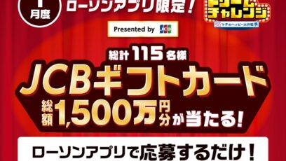 ローソン‐アプリでドリームチャレンジ 賞品: JCBギフトカード100万円分&オリジナルトートバッグ(5名様) JCBギフトカード50万円分&オリジナルトートバッグ(10名...