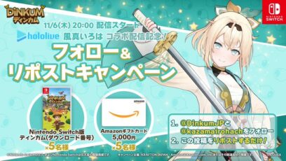 SNS応募の懸賞【X懸賞】Switch版『Dinkum』、Amazonギフト券5,000円分を合計10名様にプレゼント 締切:2025-11-15 風真いろは × ディンカム‐Nintendo Switch版『Dinkum(ディンカム)』発売記念コラボ配信 賞品:Nintendo Switch版『Dinkum(ディンカム)...SNS応募の懸賞ギフト券・商品券が当たる懸賞