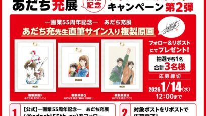 SNS応募の懸賞【X懸賞】あだち充先生の直筆サイン入り複製原画を3名様にプレゼント 締切:2026-01-14 あだち充展 フォロー&リポストキャンペーン第2弾 賞品:あだち充先生の直筆サイン入り複製原画(3名様) 締切:2026年1月14日(水)12:00 公式X(Twitt...SNS応募の懸賞