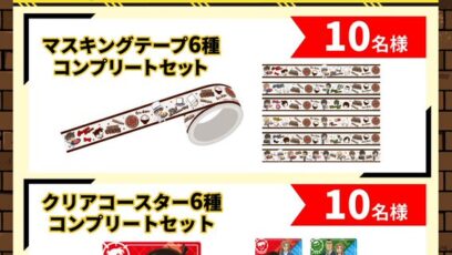 SNS応募の懸賞【X懸賞】コラボグッズの「マスキングテープ」または「クリアコースター」全種セットを合計20名様にプレゼント