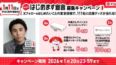 アコム‐はじめます宣言募集キャンペーン 賞品: 中尾明慶さんサイン入りモバイルバッテリー(5名様) 中尾明慶さんサイン&応援メッセージ入り色紙+ワンコムぬいぐるみ(6名様)...