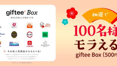 ネット応募の懸賞【毎日応募】giftee Box 500円相当を100名様にプレゼント 締切:2026-01-05 モラタメ‐毎日参加OK!プレゼントキャンペーン 賞品:giftee Box(500円相当)(100名様) 締切:2026年1月5日(月) ご応募には会員登録/ログイン...ネット応募の懸賞大量当選(100名~)の懸賞ギフト券・商品券が当たる懸賞毎日応募できる懸賞