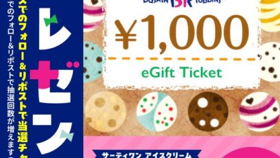 SNS応募の懸賞【X懸賞】サーティワンアイスクリーム 1,000円ギフト券を10名様にプレゼント 締切:2026-02-25 ライブドアニュース‐フォロー&リポストキャンペーン 賞品:サーティワン アイスクリーム 1,000円ギフト券(10名様) 締切:2026年2月25日(水)12:00 ...SNS応募の懸賞ギフト券・商品券が当たる懸賞