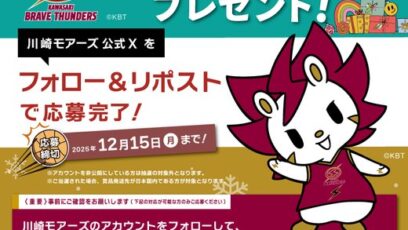 SNS応募の懸賞【X懸賞】川崎ブレイブサンダース観戦チケットを4組8名様にプレゼント 締切:2025-12-15 川崎モアーズと一緒に川崎ブレイブサンダースを応援しよう! 賞品:川崎ブレイブサンダース 観戦チケット(4組8名様) 締切:2025年12月15日(月) 公式X(Twi...SNS応募の懸賞