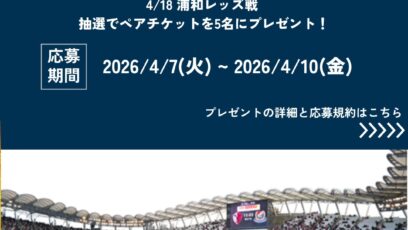JリーグGW招待キャンペーン 全国で150,000名様をご招待! 賞品:Jリーグご招待(合計約150,000名様) 締切:2026年5月27日(水) ご応募には会員登...