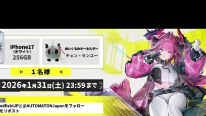 SNS応募の懸賞【X懸賞】iPhone17&ぬいぐるみキーホルダーを1名様にプレゼント 締切:2026-01-31 AUTOMATON‐『アークナイツ:エンドフィールド』正式配信開始記念 賞品:iPhone17&ぬいぐるみキーホルダー(1名様) 締切:2026年1月31日(土) @...SNS応募の懸賞豪華賞品が当たる懸賞