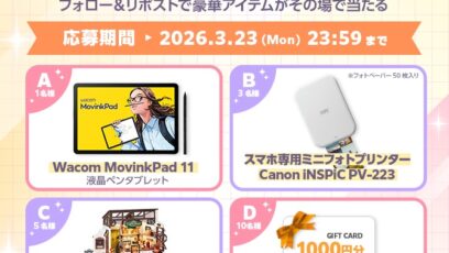 ピュアニスタ‐プレゼントキャンペーン 賞品: 『液晶ペンタブレット Wacom MovinkPad 11』 1名様 『ミニフォトプリンター Canon iNSPiC PV-...