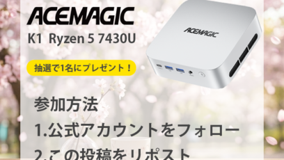 SNS応募の懸賞【X懸賞】ACEMAGIC Mini PC K1を1名様にプレゼント 締切:2026-03-20 ACEMAGIC_JP‐新生活応援プレゼントキャンペーン 賞品:AMD Ryzen 5 7430U / 16GBメモリー / 512GB SSD 搭載『ACEMAGIC Min...SNS応募の懸賞