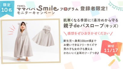FANCL ママパパsmileプログラム登録者限定!モニターキャンペーン 賞品:親子deバスローブ(キッズ)(10名様) 締切:2025年11月17日(月) ご応募に...