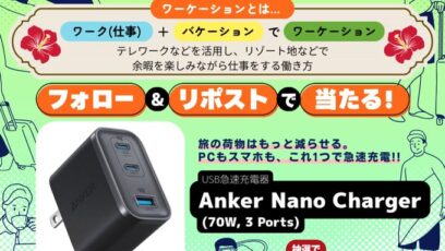 SNS応募の懸賞【X懸賞】Anker Nano Charger (70W, 3 Ports)を3名様にプレゼント 締切:2026-01-16 レイサー沖縄那覇‐フォロー&リポストキャンペーン 賞品:Anker Nano Charger (70W, 3 Ports)(3名様) 締切:2026年1月16日(金) ...SNS応募の懸賞