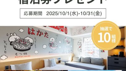 SNS応募の懸賞【Instagram懸賞】クロスライフ博多天神ペア宿泊券を5組10名様にプレゼント 締切:2025-10-31 CROSS Life‐開業3周年記念キャンペーン 賞品:クロスライフ博多天神ペア宿泊券(朝食付き)(5組10名様) 締切:2025年10月31日(金) 【STEP 1...SNS応募の懸賞