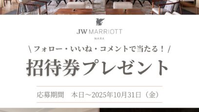SNS応募の懸賞【Instagram懸賞】JW Marriott Hotel Nara 無料宿泊、アフタヌーンティー利用券などを合計3名様にプレゼント 締切:2025-10-31 JW Marriott Hotel Nara‐ご宿泊・お食事プレゼントキャンペーン第5弾 賞品: ①1泊ご宿泊(朝食付き) 1組2名様 ➁アフタヌーンティー 1組2名様 ...SNS応募の懸賞