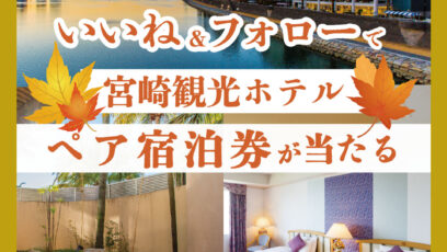 SNS応募の懸賞【Instagram懸賞】宮崎観光ホテル ペア宿泊券を2組様にプレゼント 締切:2025-10-20 宮崎観光ホテル‐フォロー&いいねキャンペーン 賞品: ・東館スーペリアツイン(朝食付き)×1組 ・西館スーペリアツイン(朝食付き)×1組 締切:2025年10月20日(...SNS応募の懸賞