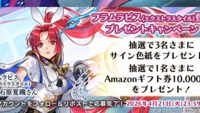 SNS応募の懸賞【X懸賞】石原夏織さんサイン入り色紙、Amazonギフト券10,000円分を合計4名様にプレゼント 締切:2026-04-21 アナザーエデン 時空を超える猫‐フォロー&リポストキャンペーン 賞品: フラムラピス役 #石原夏織 さんサイン入り色紙(3名様) Amazonギフト券10,000円分(1名...SNS応募の懸賞ギフト券・商品券が当たる懸賞