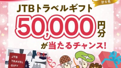 SNS応募の懸賞【X懸賞】JTBトラベルギフト50,000円分を2名様にプレゼント