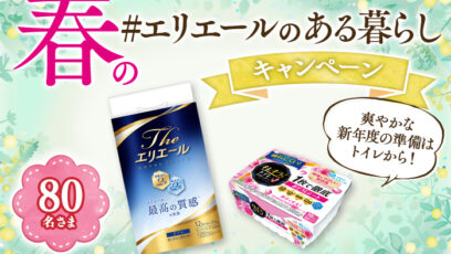 ネット応募の懸賞トイレ周りを快適にするアイテム2点セットを80名様にプレゼント 締切:2026-04-28 エリエール‐春の「#エリエールのある暮らし」キャンペーン 賞品:エリエール Theエリエールトイレットティシュー 12ロール ダブル&キレキラ®!トイレクリーナー 1枚で徹底お...ネット応募の懸賞