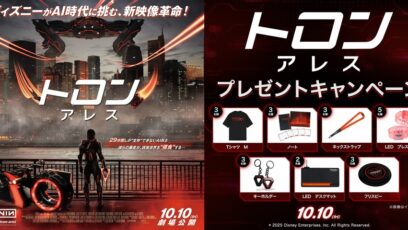 ネット応募の懸賞『トロン:アレス』グッズを合計22名様にプレゼント 締切:2025-10-23 109CINEMAS‐『トロン:アレス』プレゼントキャンペーン 賞品:『トロン:アレス』グッズ(合計22名様) 締切:2025年10月23日(木) 応募フォームより必...ネット応募の懸賞