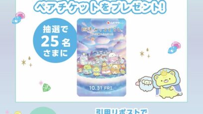 SNS応募の懸賞【X懸賞】『映画すみっコぐらし 空の王国とふたりのコ』ペアチケットを25名様にプレゼント 締切:2025-10-21 iAEON‐フォロー&リポストキャンペーン 賞品:『映画すみっコぐらし 空の王国とふたりのコ』ペアチケット(25名様) 締切:2025年10月21日(火) 公式X(T...SNS応募の懸賞