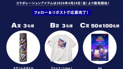 SNS応募の懸賞【X懸賞】ステンレスボトル、プリントTシャツ、映画『ザ・スーパーマリオギャラクシー・ムービー』ペアムビチケオンライン券を合計56名様にプレゼント