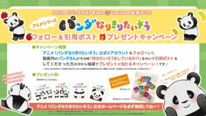 YouTube配信アニメ「パンダなりきりたいそう」フォロー&引用ポストキャンペーン 賞品: アニメ「パンダなりきりたいそう」ふわもちパンダさん シール11枚セット(10名様)...