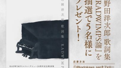SNS応募の懸賞【X懸賞】『野田洋次郎 歌詞集 RADWIMPS論』を5名様にプレゼント 締切:2026-02-02 KADOKAWAさん@本の情報‐フォロー&リポストキャンペーン 賞品:『野田洋次郎 歌詞集 RADWIMPS論』(5名様) 締切:2026年2月2日(月) 公式X(T...SNS応募の懸賞