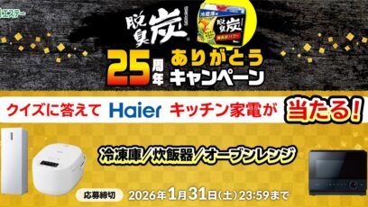 ネット応募の懸賞ハイアール 前開き冷凍庫、オーブンレンジ、マイコンジャー炊飯器を合計25名様にプレゼント 締切:2026-01-31 エステー株式会社‐脱臭炭25周年ありがとうキャンペーン 賞品: Haier(ハイアール)168L 前開き冷凍庫 JF-NUF168B:10名様 Haier(ハイアール)オー...ネット応募の懸賞豪華賞品が当たる懸賞