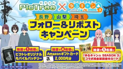 SNS応募の懸賞【X懸賞】『ゆるキャン△ SEASON3』コラボ純金製調査中カード、Amazonギフト券2,000円分、オリジナルモバイルバッテリーを合計6名様にプレゼント 締切:2025-10-17 ピクトレ‐ぼくとわたしの電柱合戦 in 長野・山梨・埼玉 コラボレーション記念 賞品: 『ゆるキャン△ SEASON3』コラボ純金製調査中カード(1名様) Amazonギフ...SNS応募の懸賞ギフト券・商品券が当たる懸賞