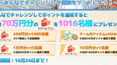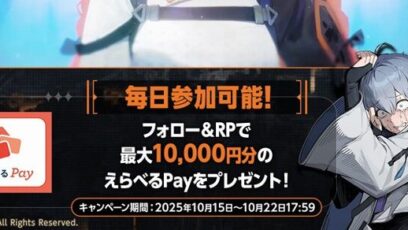 SNS応募の懸賞【毎日・X懸賞】えらべるPay最大10,000円分がその場で当たる! 締切:2025-10-22 カオスゼロナイトメア‐プレゼントキャンペーン 賞品:最大10,000円分のえらべるPay 締切:2025年10月22日(水)17:59 カオスゼロナイトメア公式X(T...SNS応募の懸賞ギフト券・商品券が当たる懸賞毎日応募できる懸賞