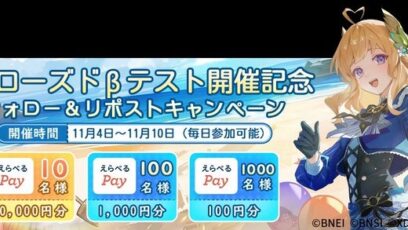 ブループロトコル:スターレゾナンス‐クローズドβテスト開催記念CP 賞品:えらべるPay最大10,000円分(1,110名様) 締切:2025年11月10日(月) ブ...