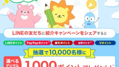 SNS応募の懸賞【LINE懸賞】選べるデジタルポイント1,000ポイントを10,000名様にプレゼント 締切:2025-11-29 みんなでKUMON!ご紹介キャンペーン 賞品:選べるデジタルポイント1,000ポイント(10,000名様) 締切:2025年11月29日(土) LINEの友だちにKU...SNS応募の懸賞大量当選(1000名~)の懸賞ギフト券・商品券が当たる懸賞