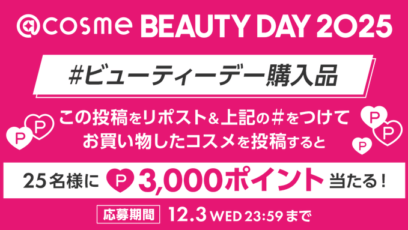 アットコスメお買い物‐#アットコスメビューティーデー これ買った! キャンペーン 賞品:3,000円分のポイント(25名様) 締切:2025年12月3日(水) ①@a...