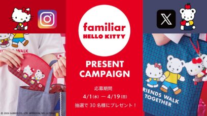 ファミリア‐ハローキティ×familiarコラボ記念キャンペーン 賞品:ハローキティ×familiarコラボアイテム(合計30名様) 締切:2026年4月19日(日) ...