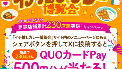 エスビー食品株式会社‐おかげさまで登録店舗230店舗突破!キャンペーン 賞品:QUOカードPay500円分(230名様) 締切:2025年12月19日(金)16:59 ...