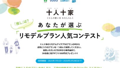 ネット応募の懸賞電子ギフト500円分を30名様にプレゼント 締切:2026-02-28 十人十家 あなたが選ぶ「リモデルプランコンテスト」 賞品:電子ギフト500円分(30名様) 締切:2026年2月28日(土) 十人十家のリモデルアイデア50プランの中...ネット応募の懸賞ギフト券・商品券が当たる懸賞