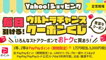 ネット応募の懸賞【毎日応募】PayPayポイント最大1万円相当、Yahoo!ショッピングのお買い物で使えるクーポンがその場で当たる! 締切:2025-10-31 ウルトラチャンスクーポンくじ 賞品: PayPayポイント(期間限定)1万円相当 1本 PayPayポイント(期間限定)5,000円相当 8本 Yahoo!ショッピングの...ネット応募の懸賞ギフト券・商品券が当たる懸賞毎日応募できる懸賞