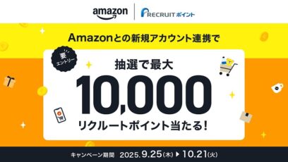 ネット応募の懸賞リクルートポイント最大10,000ポイントを合計1,110名様にプレゼント 締切:2025-10-21 リクルート‐Amazonとの新規アカウント連携で抽選で最大10,000リクルートポイント当たる! 賞品: 10,000ポイント/10名様 1,000ポイント/100名様 ...ネット応募の懸賞大量当選(1000名~)の懸賞