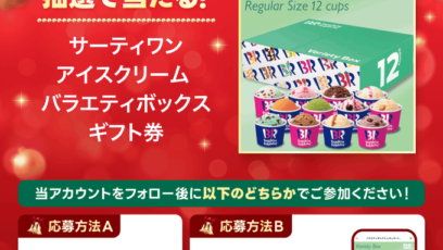 SNS応募の懸賞【X懸賞】サーティワンアイスクリーム バラエティボックス ギフト券を10名様にプレゼント