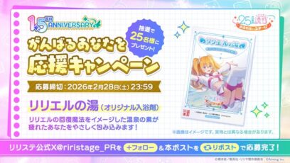 SNS応募の懸賞【X懸賞】リリエルの湯(オリジナル入浴剤)を25名様にプレゼント 締切:2026-02-28 2.5次元の誘惑 天使たちのステージ‐がんばるあなたを応援キャンペーン 賞品:リリエルの湯(オリジナル入浴剤)(25名様) 締切:2026年2月28日(土) 公式X(...SNS応募の懸賞