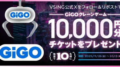 SNS応募の懸賞【X懸賞】GiGOクレーンゲーム1万円分チケットを10名様にプレゼント 締切:2025-10-02 VSING Japan‐フォロー&リポストキャンペーン 賞品:GiGOクレーンゲーム1万円分チケット(10名様) 締切:2025年10月2日(木) 公式X(Twitt...SNS応募の懸賞