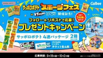 SNS応募の懸賞【X懸賞】サッポロポテト&VS PARK・トンデミのチケットを5名様にプレゼント 締切:2025-10-02 バンダイナムコ アミューズメントユニット‐「サッポロポテト スポーツフェス in VS PARK・トンデミ」開催記念 賞品:サッポロポテト&VS PARK・トンデミのチケット(...SNS応募の懸賞