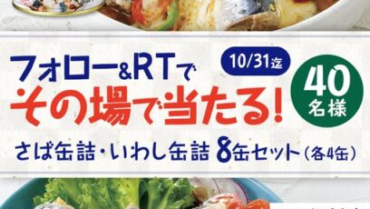 SNS応募の懸賞【毎日・X懸賞】さば缶詰・いわし缶詰 8缶セットが40名様にその場で当たる! 締切:2025-10-31 だんどり~にゃ‐フォロー&リポストキャンペーン 賞品:さば缶詰・いわし缶詰 8缶セット(40名様) 締切:2025年10月31日(金) だんどり~にゃ公式X(Twit...SNS応募の懸賞毎日応募できる懸賞