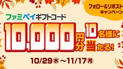 SNS応募の懸賞【X懸賞】ファミペイギフトコード10,000円分を10名様にプレゼント