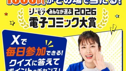 SNS応募の懸賞【毎日・X懸賞】シーモアポイント1,000ptが100名様にその場で当たる! 締切:2025-11-19 コミックシーモア‐電子コミック大賞2026クイズキャンペーン 賞品:シーモアポイント1000pt(100名様) 締切:2025年11月19日(水) コミックシーモア公...SNS応募の懸賞大量当選(100名~)の懸賞毎日応募できる懸賞