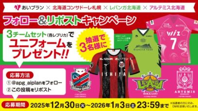 SNS応募の懸賞【X懸賞】ユニフォームセットを3名様にプレゼント 締切:2026-01-03 あいプラン / A.I.PLAN‐お年玉プレゼントキャンペーン 賞品:ユニフォームセット(3名様) 締切:2026年1月3日(土) 公式X(Twitter)アカウント...SNS応募の懸賞