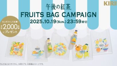 SNS応募の懸賞【毎日・X懸賞】午後ティーフルーツバッグが2,000名様にその場で当たる! 締切:2025-10-19 キリンビバレッジ‐午後ティー フルーツバッグ キャンペーン 賞品:午後ティーフルーツバッグ(2,000名様) 締切:2025年10月19日(日) ① @Kirin_C...SNS応募の懸賞大量当選(1000名~)の懸賞毎日応募できる懸賞