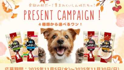 SNS応募の懸賞【X懸賞】おやつ&フード詰め合わせを10名様にプレゼント 締切:2025-11-17 日本ペットフード‐毎月11日は犬の日キャンペーン 賞品:おやつ&フード詰め合わせ(10名様) 締切:2025年11月17日(月) 公式X(Twitter)アカウントを...SNS応募の懸賞