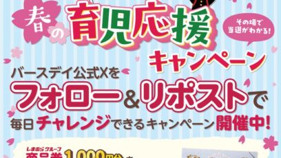バースデイ@しまむらグループ‐春の育児応援キャンペーン 賞品:しまむらグループ商品券1,000円分(100名様) 締切:2026年3月8日(日) バースデイ@しまむら...